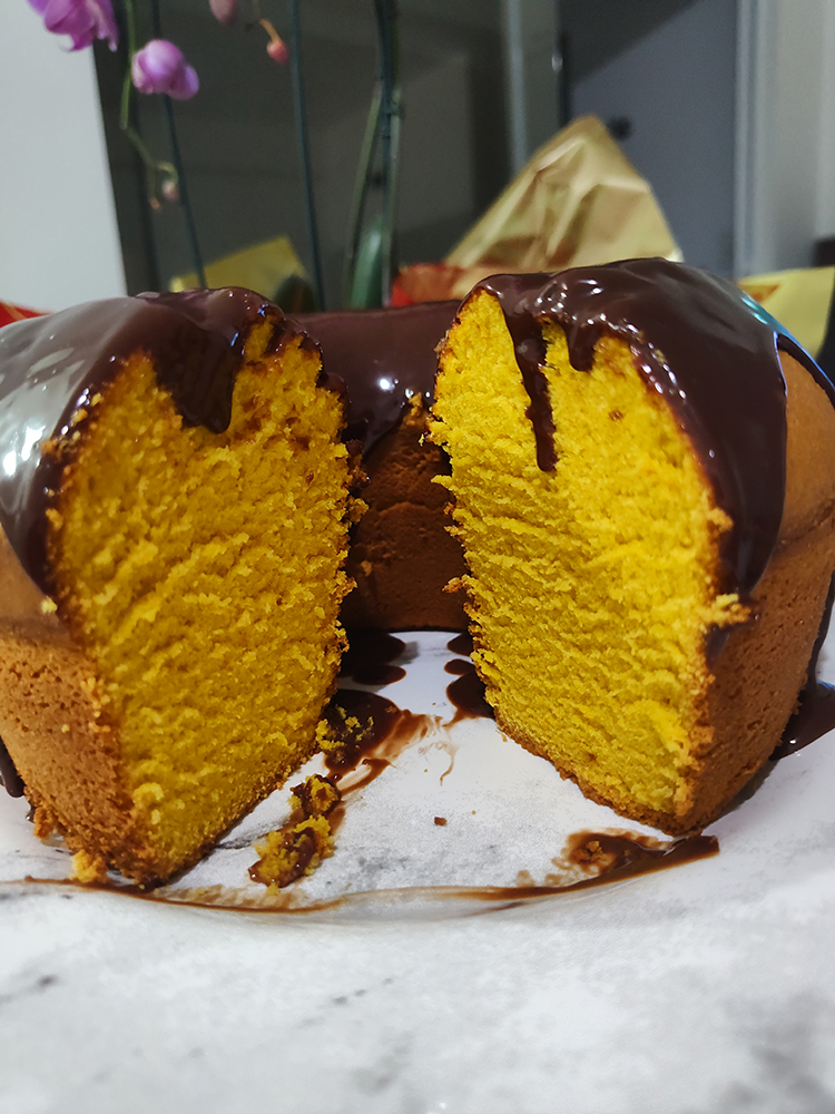 Bolo de cenoura com cobertura de ganache de chocolate